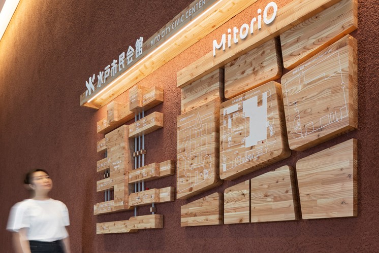當視線被那面濃烈的紅墻所吸引,走近,一種沉穩而富有生命力的結構便悄然呈現眼前。深紅如幕的背景之上,原木立柱與橫梁縱橫交錯,以近乎腳手架般的構筑邏輯,層疊、穿插、咬合。