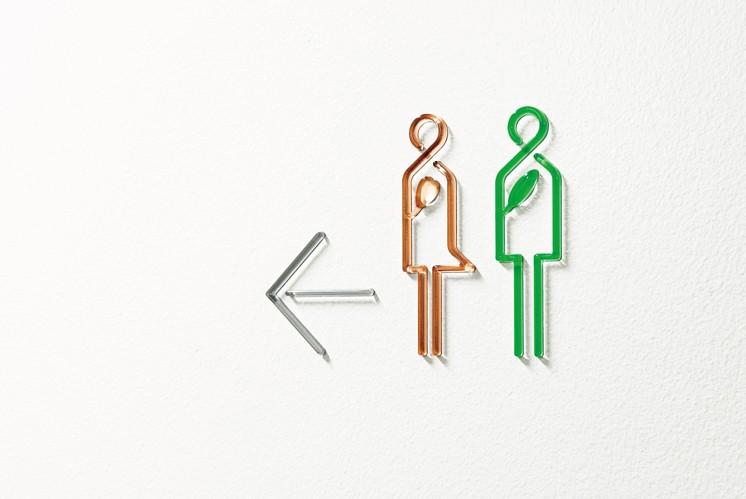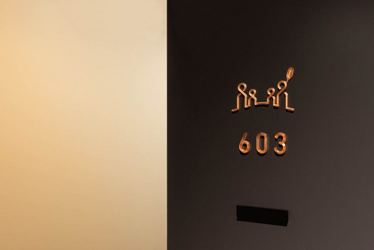 形態設計是 新生主題的具象化表達。核心視覺采用 空氣感混合圖形,以模糊、輕盈的邊緣模擬香氣的無界彌散,讓圖形如氣息般縈繞空間,弱化導視的 指令感。同時,萌芽象形圖標貫穿系統:衛生間標識里,女性符號似嫩芽蜷曲,男性符號伴葉片舒展,將 創意萌芽的隱喻嵌入功能標識;房間標識 “603” 以連貫線條勾勒出類似人群互動或萌芽生長的形態,線條靈動且保有空氣感,讓形態成為 交流新生的視覺符號。