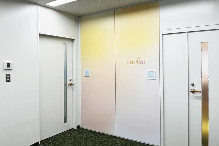 整套導視系統營造出 “縹緲卻清晰” 的獨特美感。圖形的空氣感令視覺體驗如嗅香氣般舒緩,色彩的柔和過渡消解了導視的生硬感,轉而傳遞包容的療愈力。“NEST+REST” 區域的墻面設計,以輕量的色彩與文字呈現,讓休憩空間的療愈感從視覺延伸至心理,真正實現了 “情感療愈” 的功能價值。