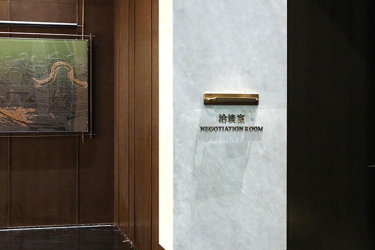 麥肯標識為其打造的導視系統,并非普通功能性標牌,而是通過材質、工藝與光影的打磨,成為項目高端調性的具象表達。