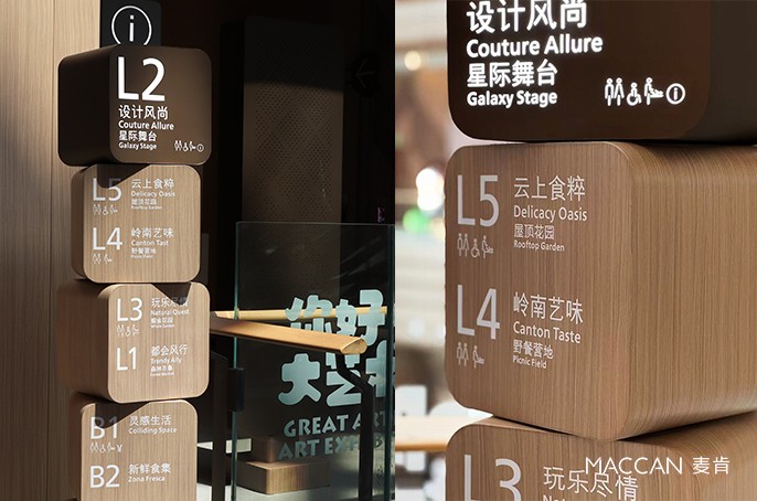 麥肯標識為廣州漢溪 K11 打造的導視系統,以材質為語言,以形態為韻律,將 “藝術、人文、自然” 的基因編織進每一處指引里。它不僅是訪客穿梭空間的 “指南針”,更是一場關于文商旅美學的沉浸式敘事,讓每一次 “找路”,都成為與藝術、文化、自然相遇的驚喜旅程。