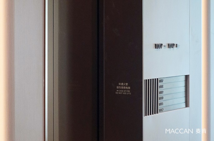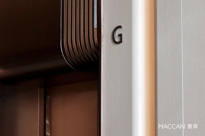 深色條形木紋材質搭配發光字,淺色木紋基底搭配金屬字與金屬邊框,搭配白色背景墻,整體呈現出——“雅致、內斂、柔和” 的視覺效果,是麥肯標識在商業辦公空間領域的又一力作。